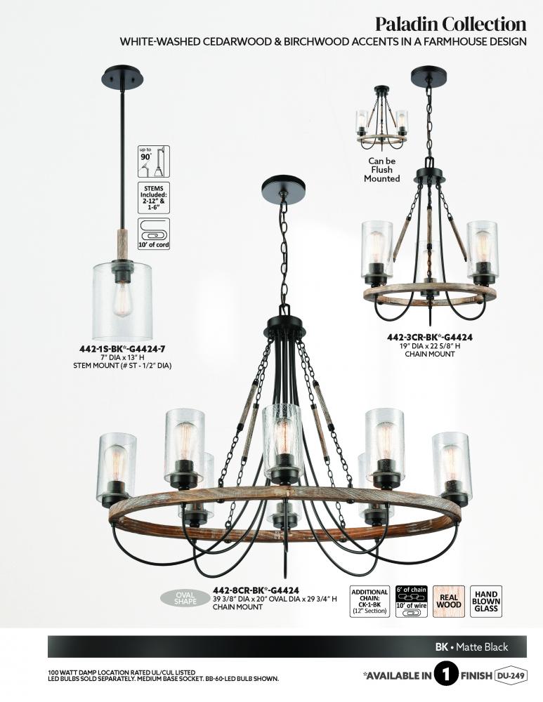 The Paladin collection is comprised of hand carved cedarwood and birchwood accents that give the fixture a farmhouse or lodge look and feel.
