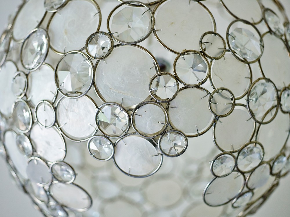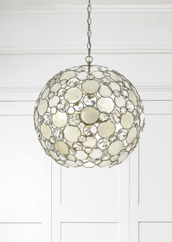 The Palla Collection is an organic mix of glamour and elegance. Each frame is fitted with hand pinned organic, natural textured Capiz shells and faceted cut crystal jewels inside overlapping metal circles giving depth and dimension. Whether the look is rustic, boho, or a coastal vibe, this light is as versatile as it is stylish.