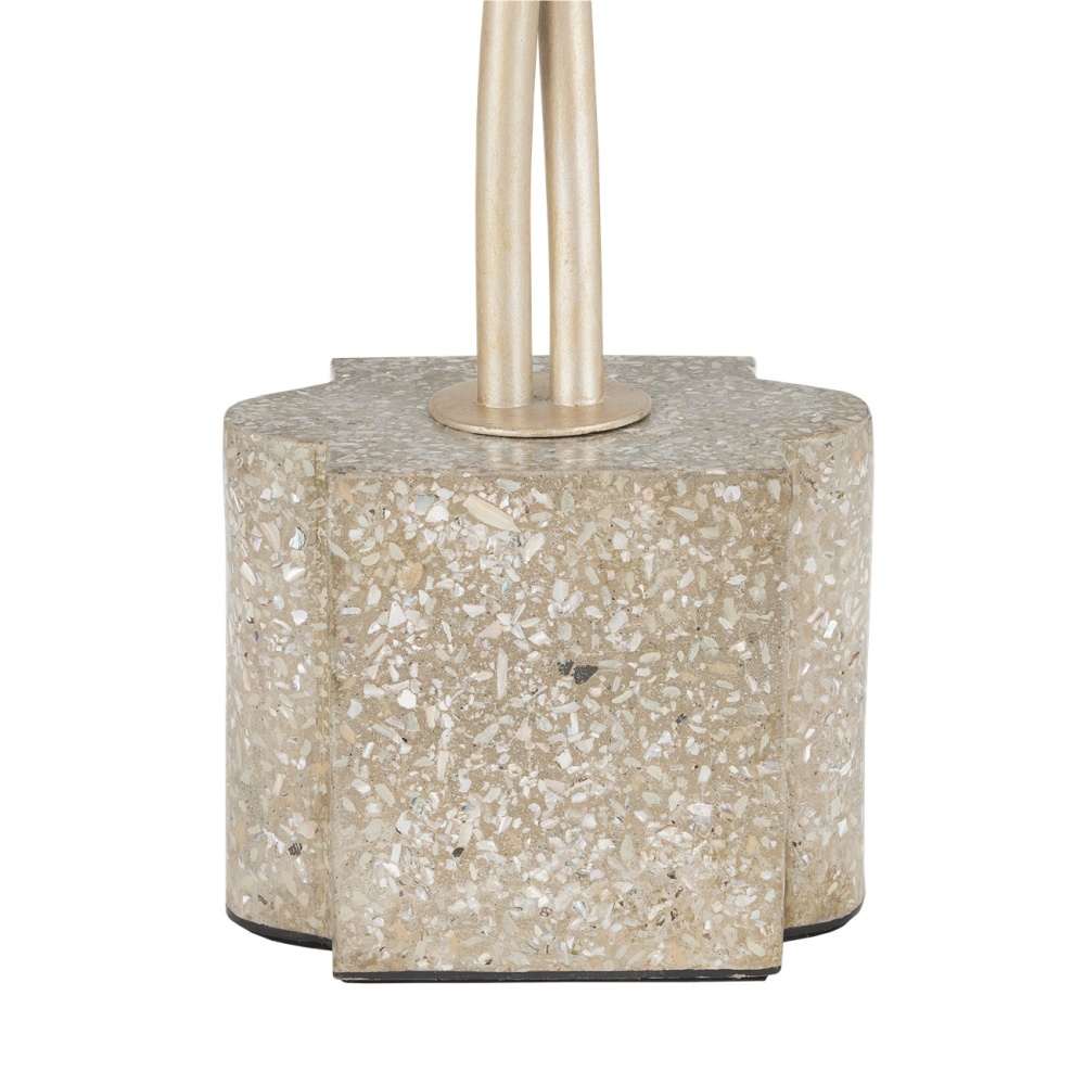 Made of steel, the Paradiso Gold & Silver Table or Console Lamp has a lyrical shape inspired by the Strelitzia reginae, more commonly known as the Bird of Paradise plant. The limbs that arc up and away from a polished concrete base with crushed abalone shells sprinkled into the material are in a contemporary silver leaf finish. The blossoms that flow around the light bulbs are in a contemporary gold leaf finish. This silver and gold table lamp is an example of how nature-inspired design elements are driving the biophilic movement.