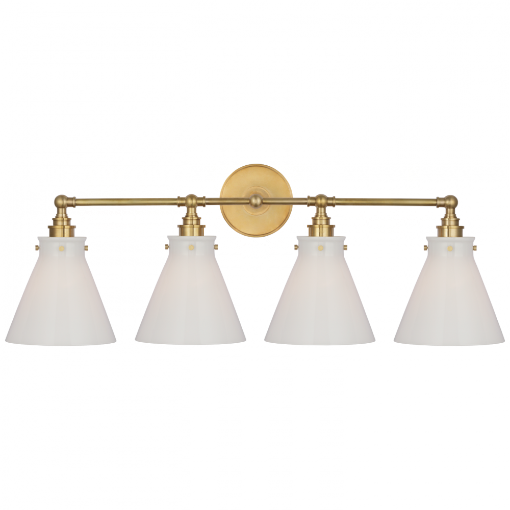 Parkington 32" Four Light Bath Bar in Antique-Burnished Brass with White Glass