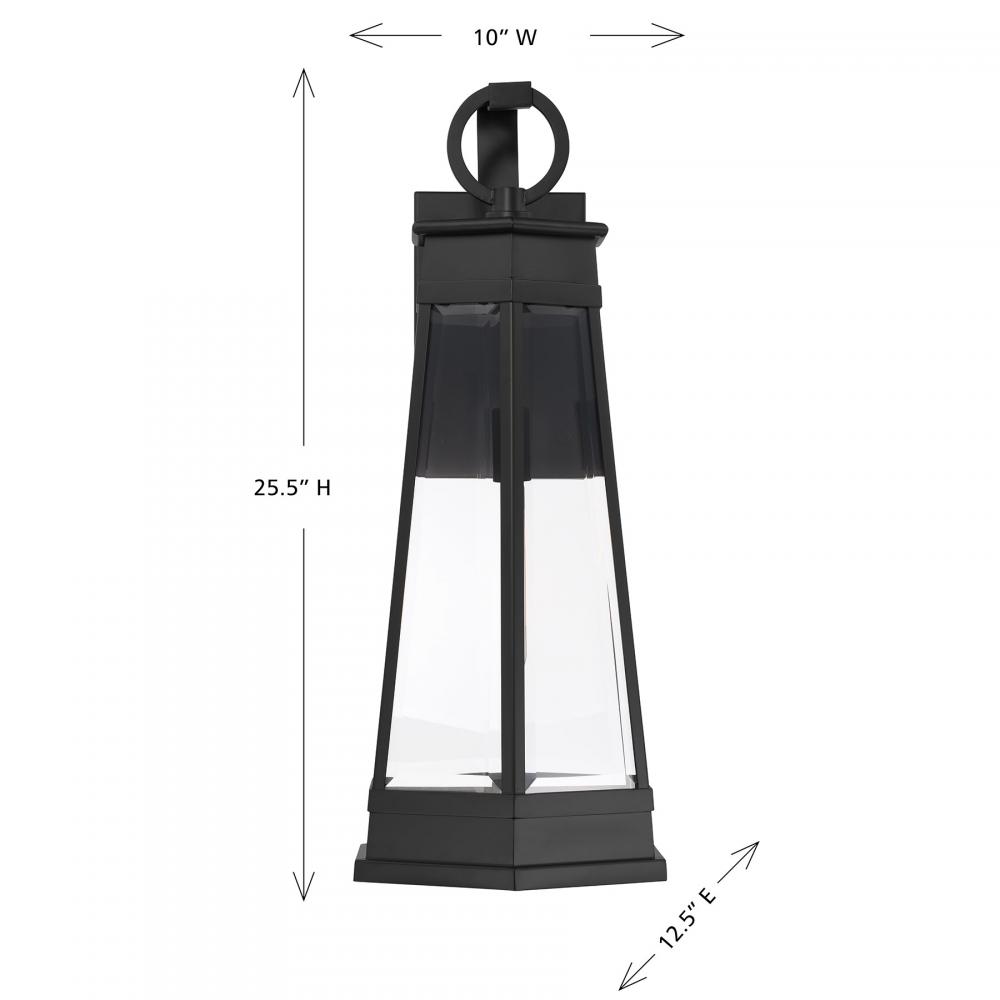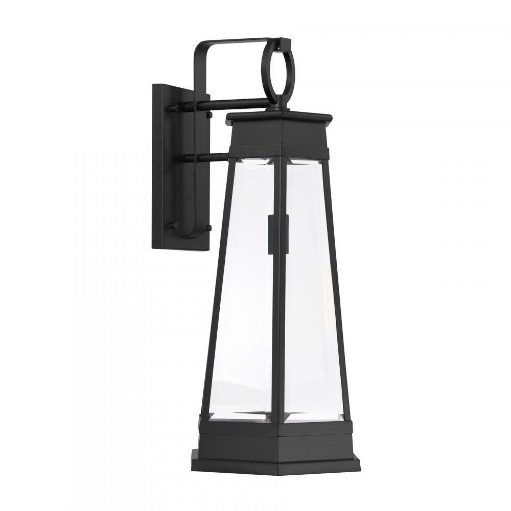 Light the way home with the terrific transitional style of the Savoy House Payne 1-light outdoor wall sconce. It has standout style thanks to panes of clear beveled glass, thoughtful geometric detailing and a versatile Matte Black finish. Use it solo or in groupings to create a great first impression. Payne is 25.5" in height, 10" in width and extends 12.5" from the wall. Uses one standard size bulb of up to 60 watts. Bulb not included. Payne is wet area rated for use in covered or uncovered outdoor areas.