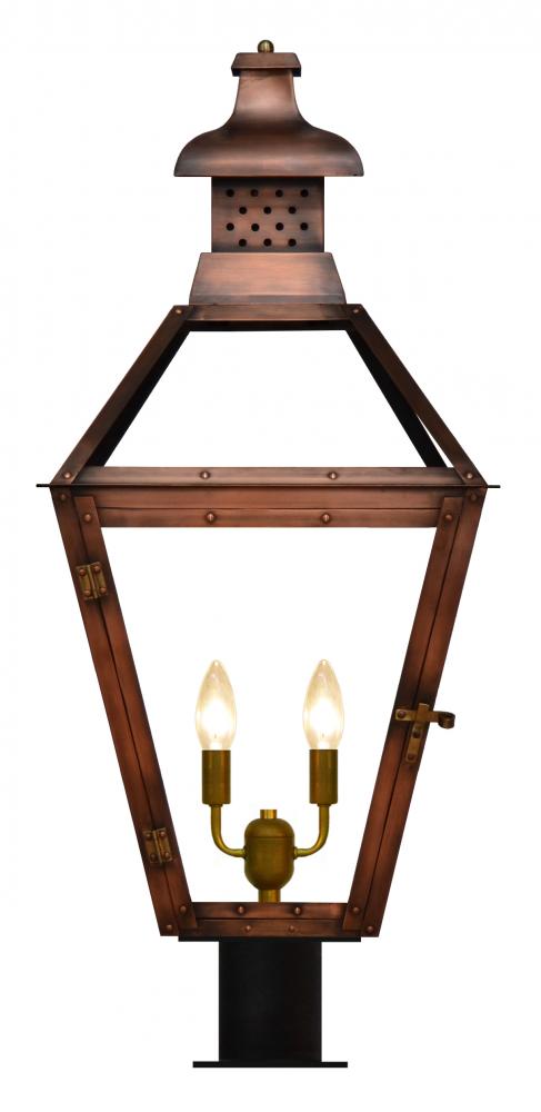 Size 22 Electric Copper Lantern, 2 candelabra base sockets, with Post Fitter