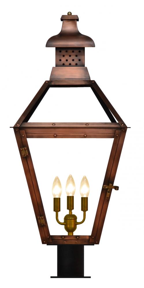 Size 29 Electric Copper Lantern, 3 candelabra base sockets, with Post Fitter