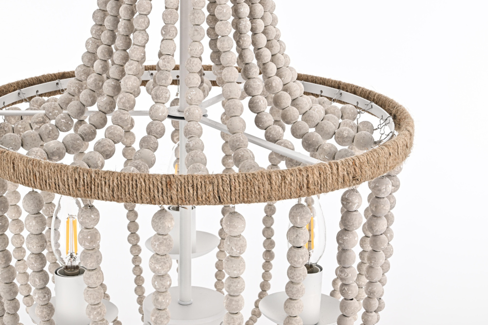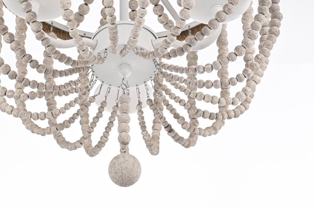 Timeless elegance meets coastal charm as weathered white wooden beads create a serene, sophisticated presence perfect for refined spaces.