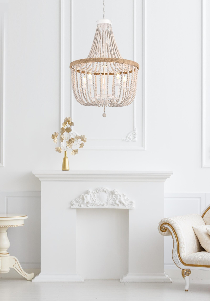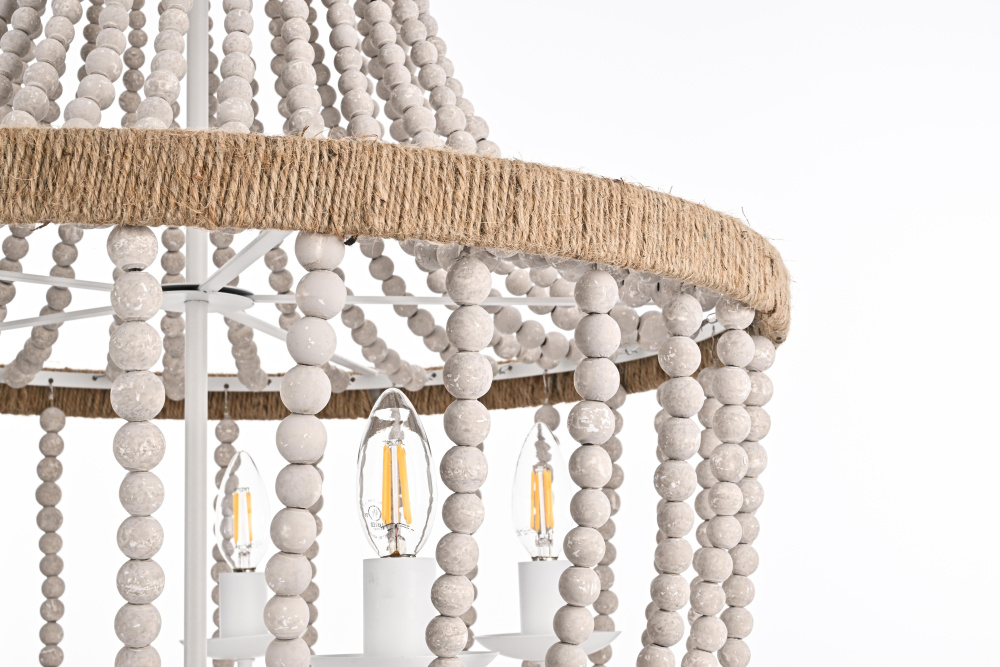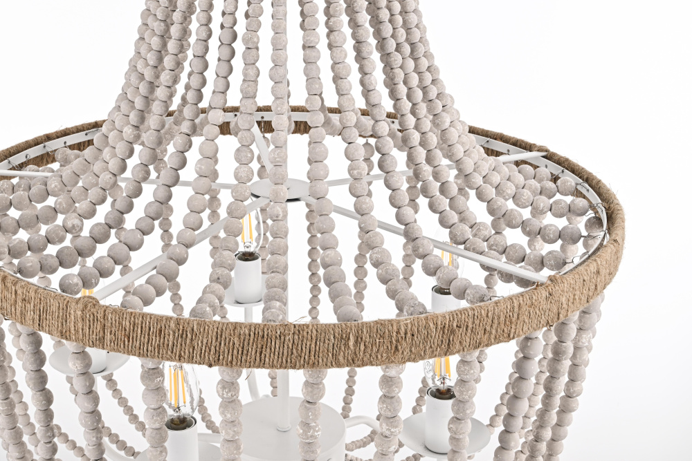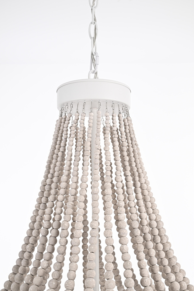 Timeless elegance meets coastal charm as weathered white wooden beads create a serene, sophisticated presence perfect for refined spaces.
