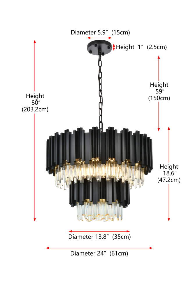Elegant 3400D24BK - Pendant D24"H14"L8 Black