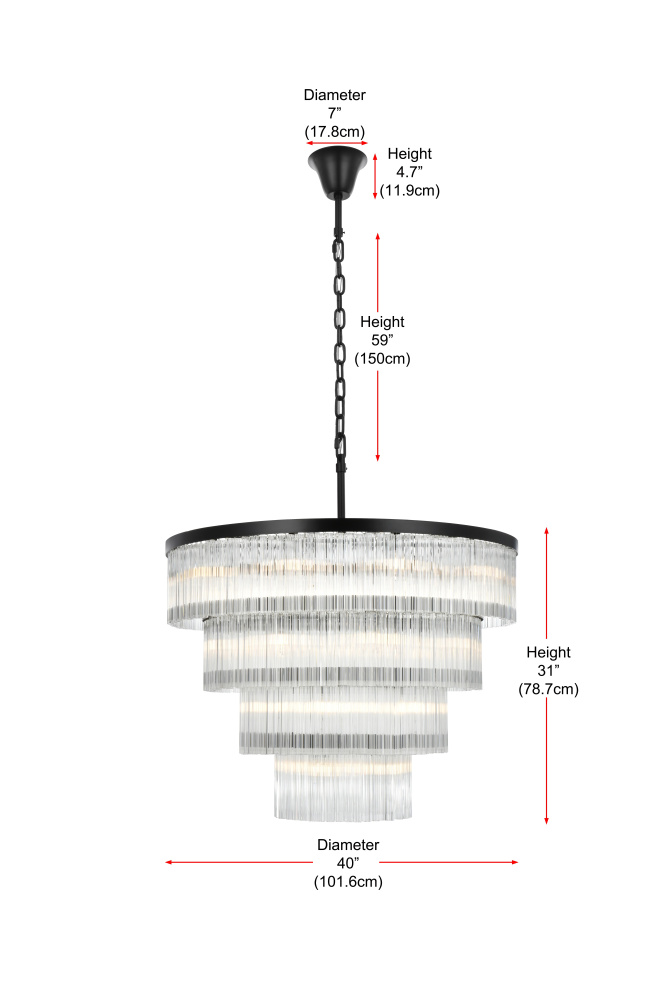 Turn your space into a glowing masterpiece with this striking pendant light, crafted from durable iron and shimmering clear ribbed glass. The cascading layers create a stunning interplay of light and shadow, refracting illumination into a radiant display that transforms your space into an illuminated work of art. Available in chrome for a sleek, contemporary aesthetic, black for bold contrast, and satin gold for an inviting warmth, this pendant light is as versatile as it is beautiful. Whether you choose a single tier for minimalist charm, two tiers for balanced depth, three tiers for bold presence, or four tiers for show-stopping grandeur, there’s an option for every setting. Featuring both round and rectangular frame designs, this fixture adapts to any space with ease. Complete with a matching canopy and chain, and fully dimmable for customized lighting, this pendant pairs perfectly with the coordinating single-tier flush mount and wall sconce collection, ensuring a cohesive, radiant design throughout youhome or office. Please note: light bulbs are sold separately.