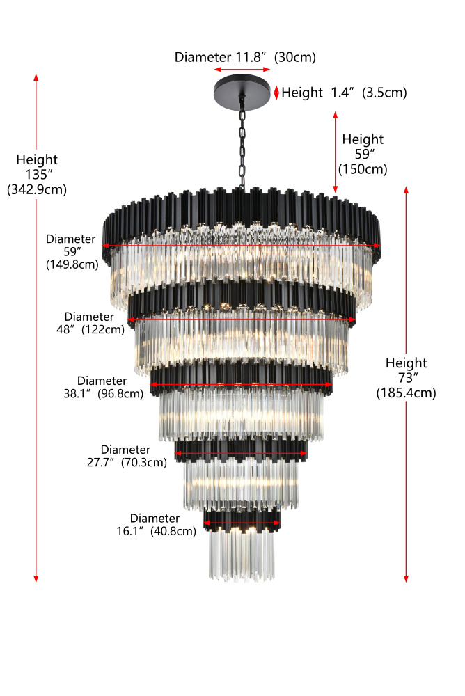 Elegant 3401G36BK - Pendant L36.5"W14"H14"L9 Black
