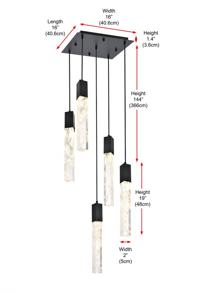 Pendant L16"W16"H24"L5 Black