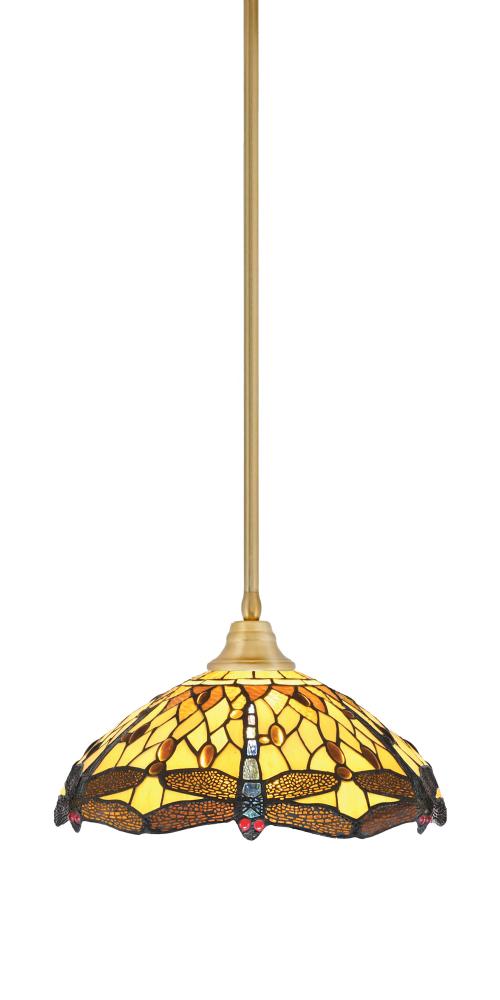 Toltec Lighting 26-NAB-946 Stem Hung Pendant, New Age Brass Finish, 16 Amber Dragonfly Art Glass