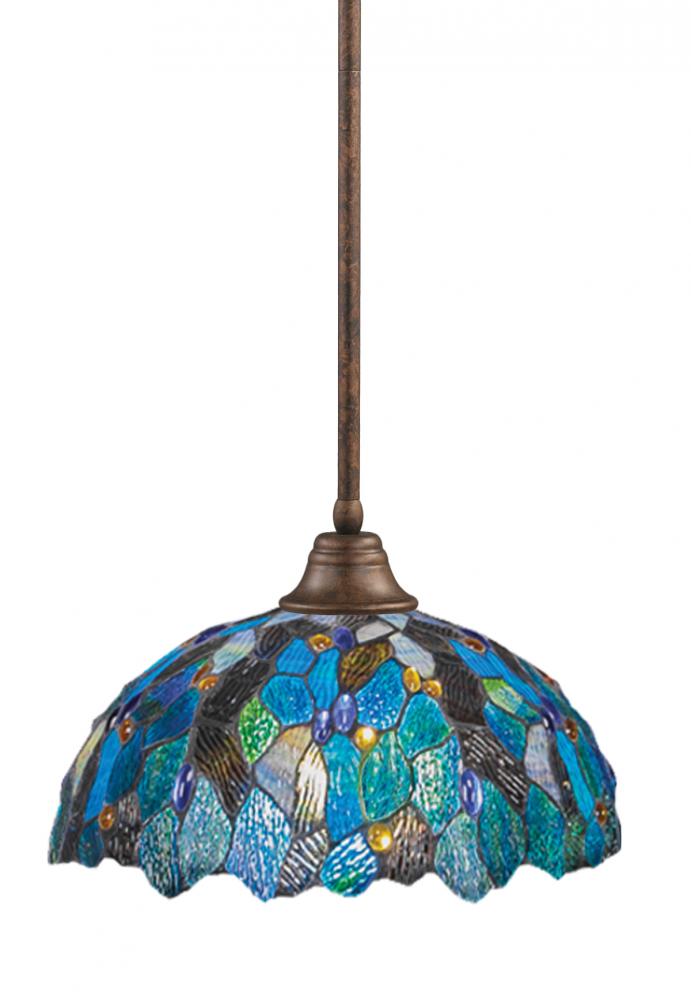 Stem Pendant With Hang Straight Swivel Shown In Bronze Finish With 16 Blue Mosaic Art Glass