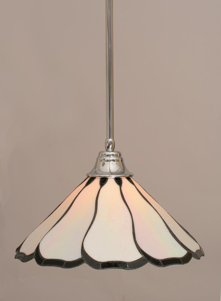 Toltec Lighting 26-CH-912 Stem Hung Pendant With Hang Straight Swivel Shown In Chrome Finish With 16 Pearl & Black Flair Art Glass