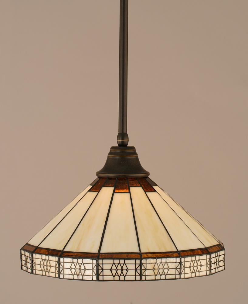 Toltec Lighting 26-DG-964 Stem Hung Pendant With Hang Straight Swivel Shown In Dark Granite Finish With 15 Honey & Brown Mission Art Glass