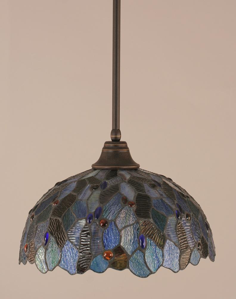 Toltec Lighting 26-DG-995 Stem Hung Pendant With Hang Straight Swivel Shown In Dark Granite Finish With 16 Blue Mosaic Art Glass