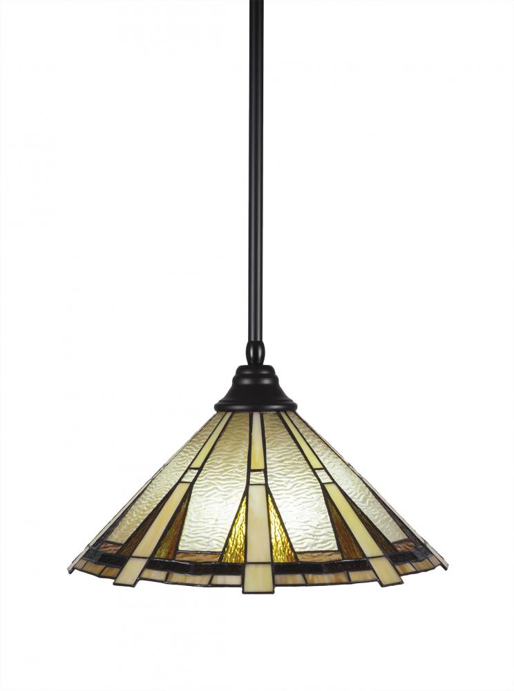 Toltec Lighting 26-MB-934 Stem Hung Pendant With Hang Straight Swivel Shown In Matte Black Finish With 16 Zion Art Glass
