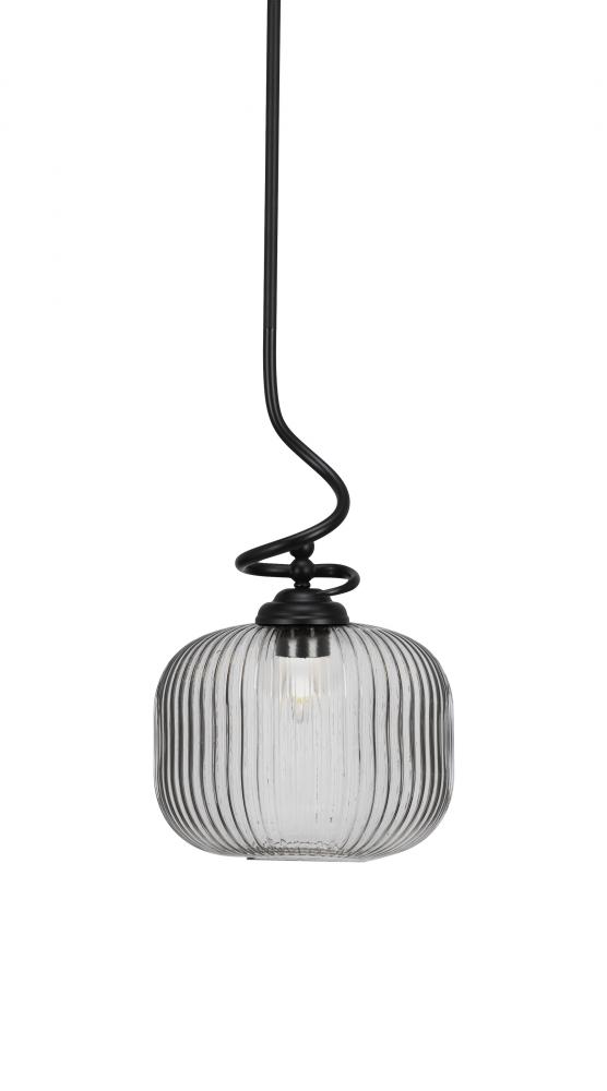 Capri Stem Pendant With Hang Straight Swivel Shown In Matte Black Finish With 10 Clear Ribbed Glass