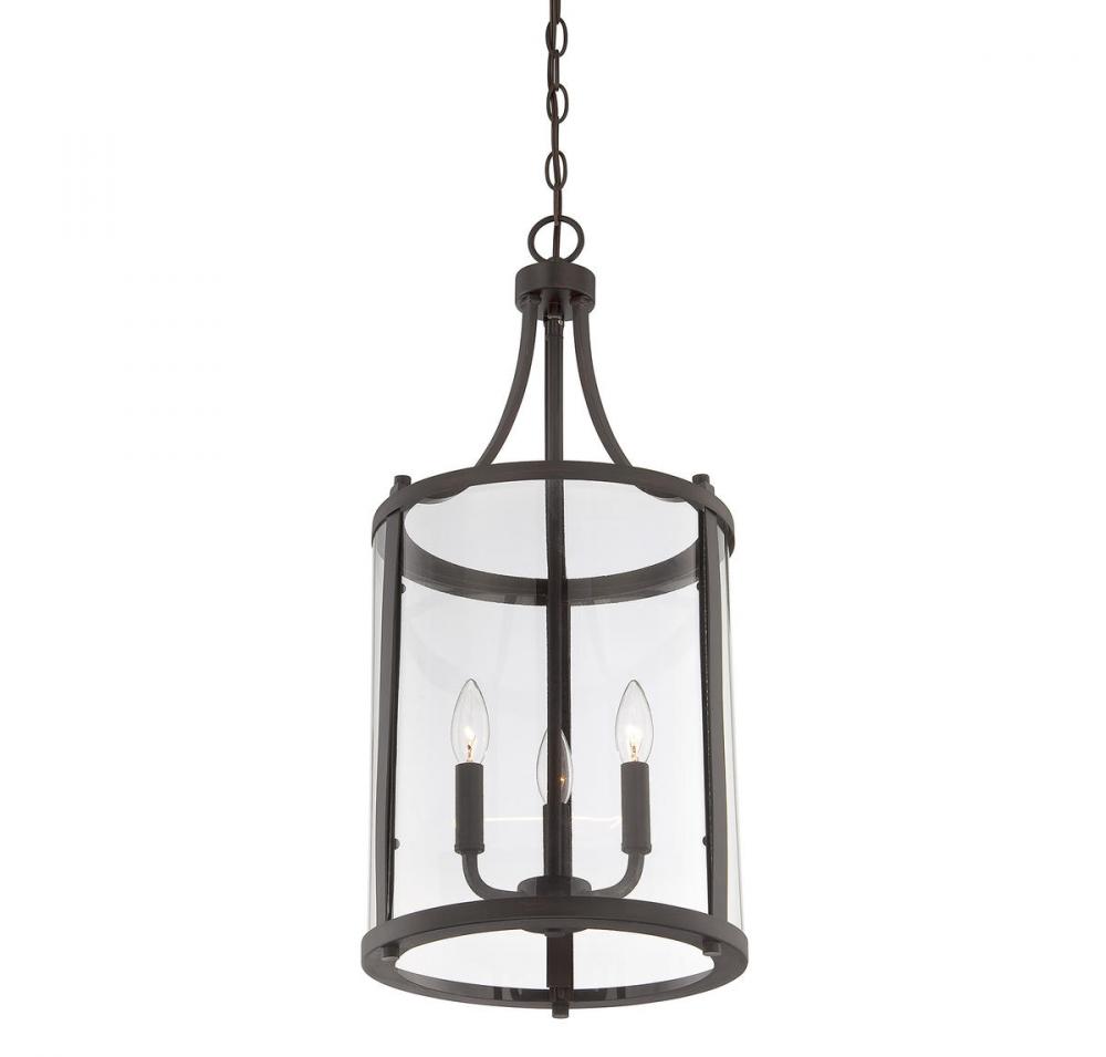 This sleek, cylindrical Penrose 3-light foyer light from Savoy House is an excellent choice for lovers of stylish modern design. It features clear glass and is finished in bold English bronze. Foyer lights are often used in foyers and entryways, but can also be used in great rooms, kitchens, offices and bedrooms too! Bulbs not included. Try using stylized bulbs for a different look! The English bronze finish can be matched with bronze hardware or mixed with hardware in other finishes. Bring Penrose into rooms of any style, especially transitional or classic, for a big touch of lighting allure. When you choose a Savoy House lighting fixture, you can be certain you've selected a piece that will withstand the test of time.