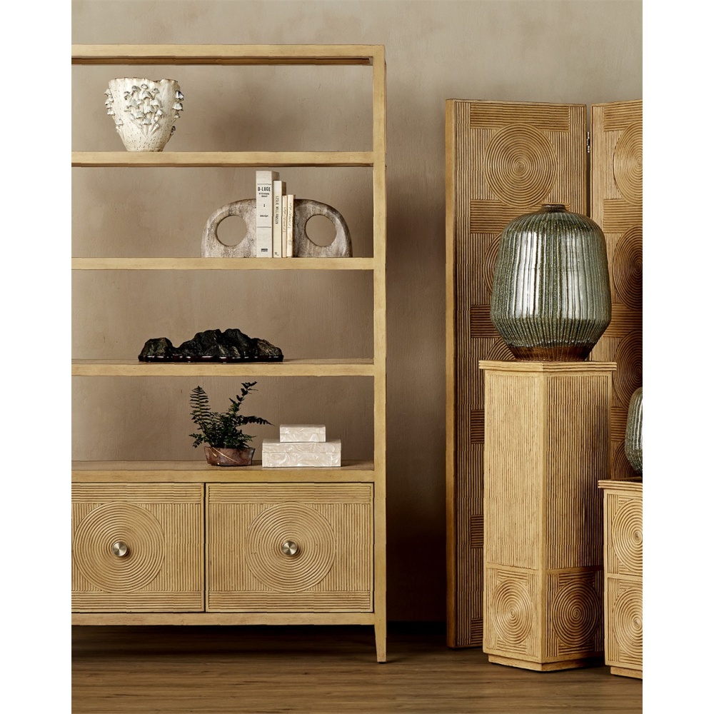 Made of composite to have a pearlized feel to it, the Perlas Swirl Box Set will bring an ethereal sheen to a room. The interiors of the peach-colored boxes are natural wood over which the composite is seamlessly wrapped. This piece continues the exploration of unique materials in boxes with this set of contemporary accessories.