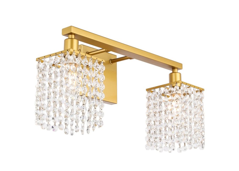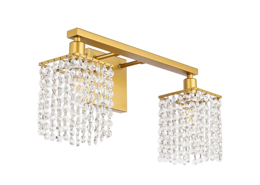 Elegant LD7008BR - Phineas 2 light Brass and Clear Crystals wall sconce