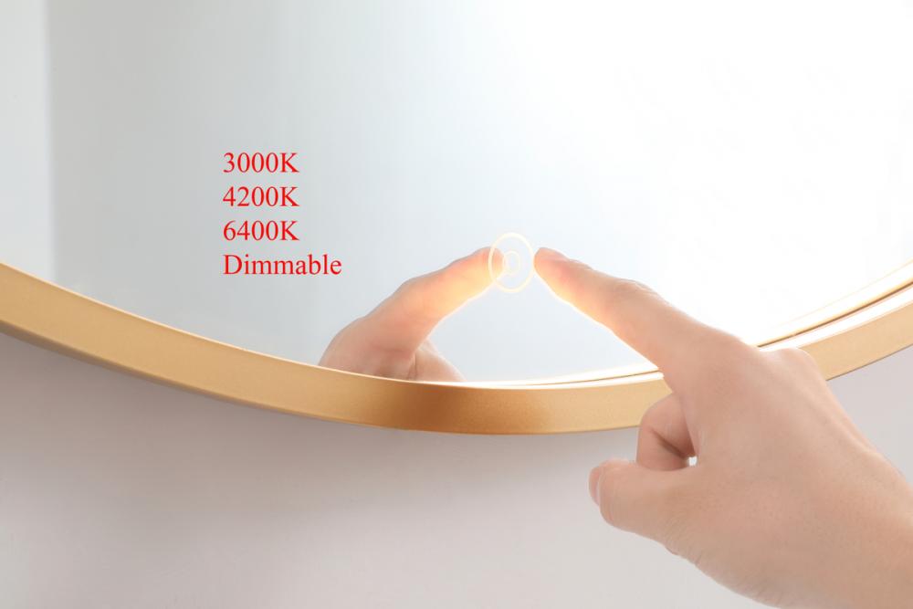 Pier 24 inch LED mirror with adjustable color temperature 3000K/4200K/6400K in brass