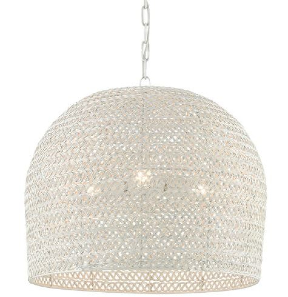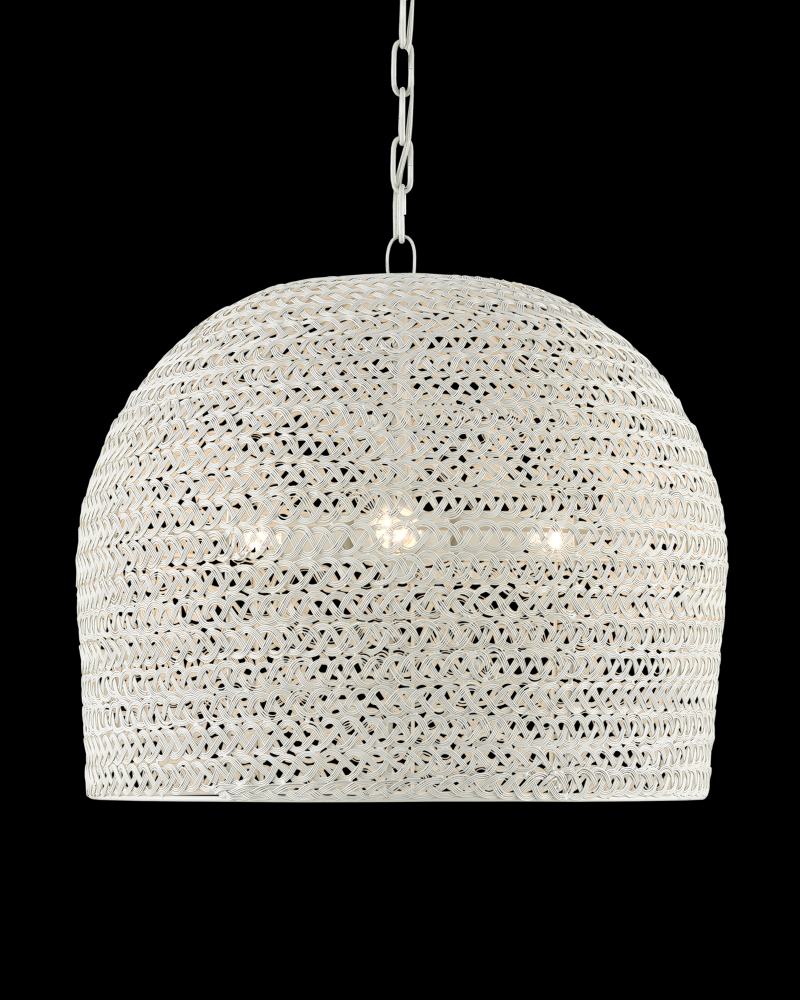 The Piero White Medium Chandelier may appear to be woven from a natural plant material, but it is made of iron in a white finish to make it one of our offerings that illustrates the skills our craftspeople bring to their work. When the white chandelier is illuminated, textural patterns will enliven surrounding surfaces. Adjustable from 24.25" to 94" with use of included chain/rod kit/cable. If your space calls for a longer drop, additional chain/rods/cable is available for purchase.