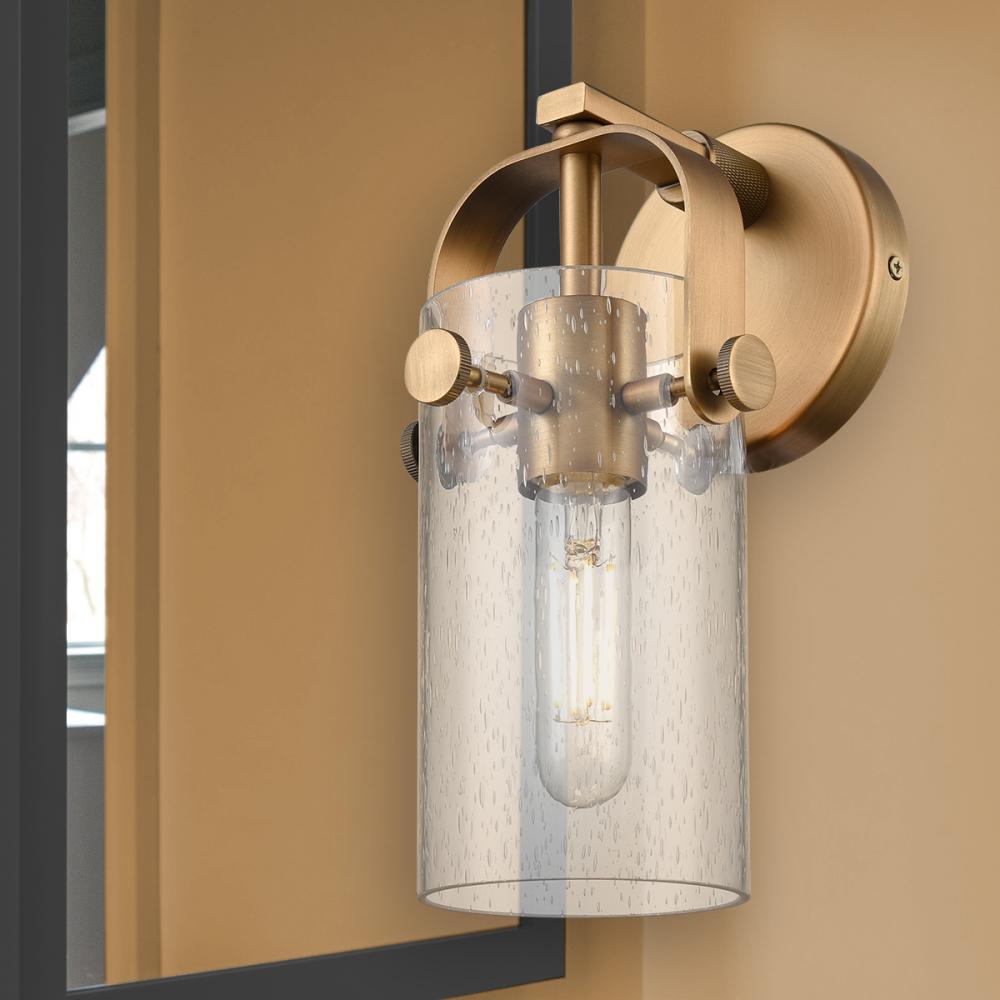 Pilaster - 1 Light - 7 inch Long Glass - Brushed Brass - Seedy Shade - Sconce