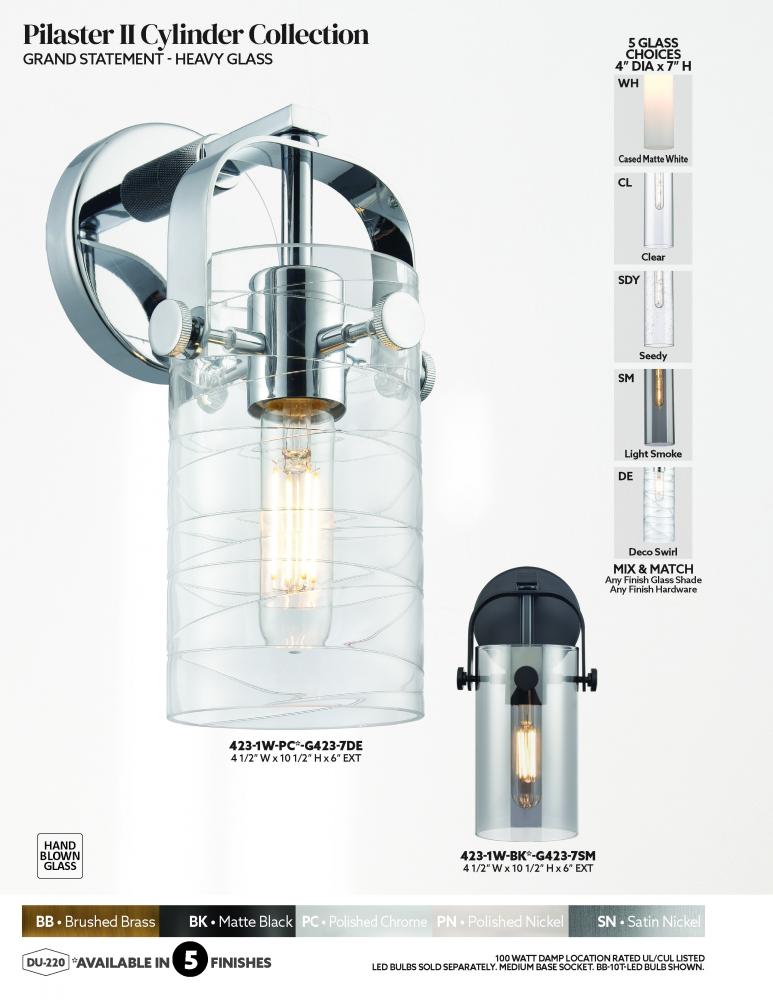 Pilaster - 1 Light - 4 inch Glass - Brushed Satin Nickel - Sconce