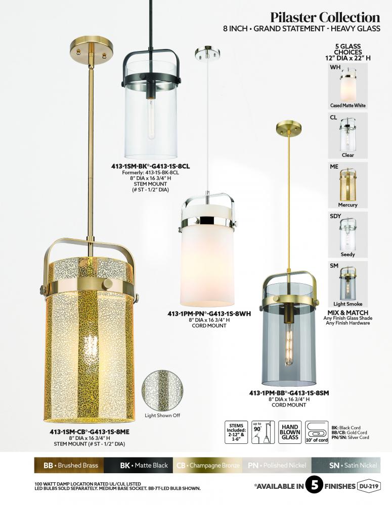 Innovations Lighting 413-1S-SN-8CL - Pilaster - 1 Light - 8 inch Glass - Brushed Satin Nickel - Stem hung - Mini Pendant