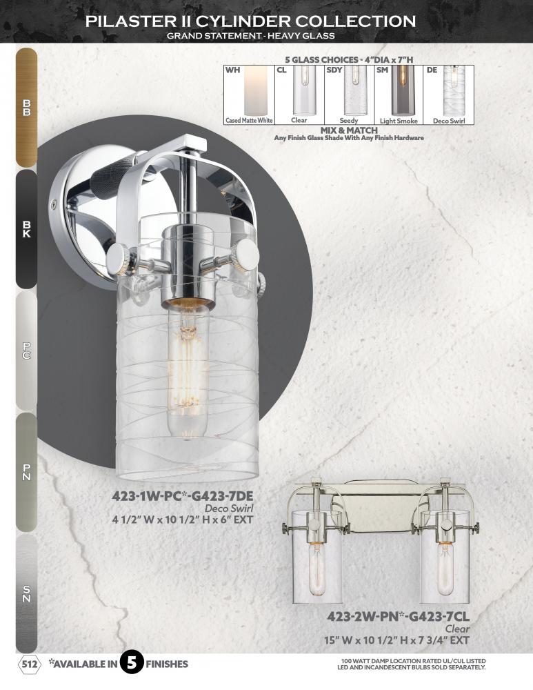 Pilaster - 1 Light - 4 inch Glass - Brushed Satin Nickel - Sconce