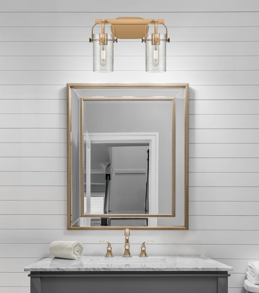 Pilaster - 2 Light - 15 inch - Brushed Brass - Seedy Shade - Bath Vanity Light