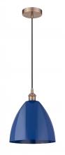 Innovations Lighting 516-1P-AB-MBD-12-BL - Plymouth - 1 Light - 12 inch - Antique Brass - Cord hung - Mini Pendant