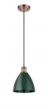 Innovations Lighting 516-1P-AB-MBD-12-BL - Plymouth - 1 Light - 12 inch - Antique Brass - Cord hung - Mini Pendant