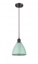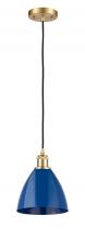 Plymouth - 1 Light - 8 inch - Antique Brass - Blue Shade - Cord hung - Mini Pendant