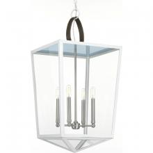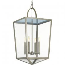 The Shearwater series embodies designer Jeffrey Alan Mark’s love of easy coastal living. With true California style, the Shearwater pendant is an Aged Brass lantern topped with a handsome brown topstitched leather handle. Clear glass shades surround a four-light candelabra to complete the look. This family of fixtures is part of the Jeffrey Alan Marks Point Dume™ lighting collection which celebrates a curated mix of yesterday and today, distilling both industrial and artisanal influences.