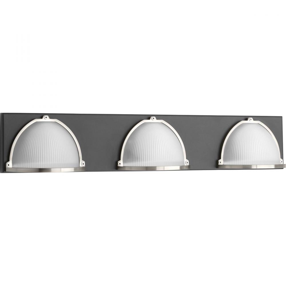 Three-Light 9W Led Bath Fixture;Led Source Offers Energy And Maintenance Savings Benefits;Popular Graphite Finish;Prismatic Glass Shades Offer A Sleek, Industrial-Inspired Appearance;Etched Prismatic Glass Is Framed Within A Die Cast Bezel To Enhance Visu