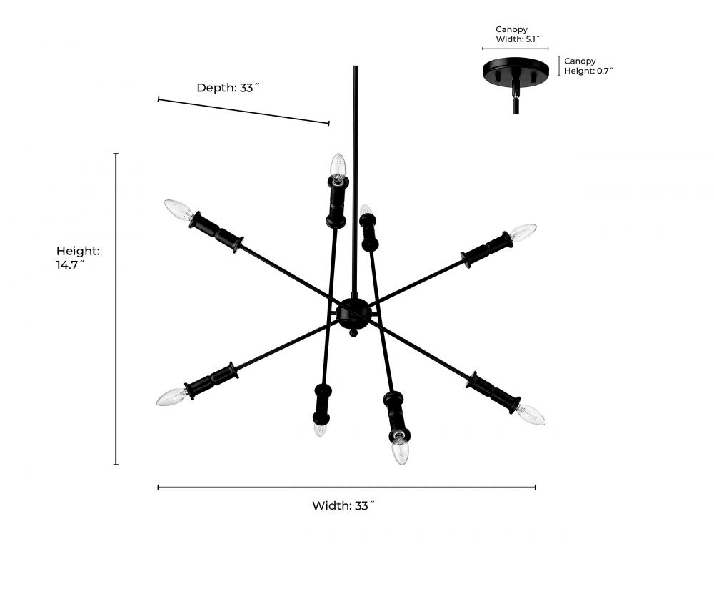 Potiss 8-Light Chandelier Ceiling Light Matte Black