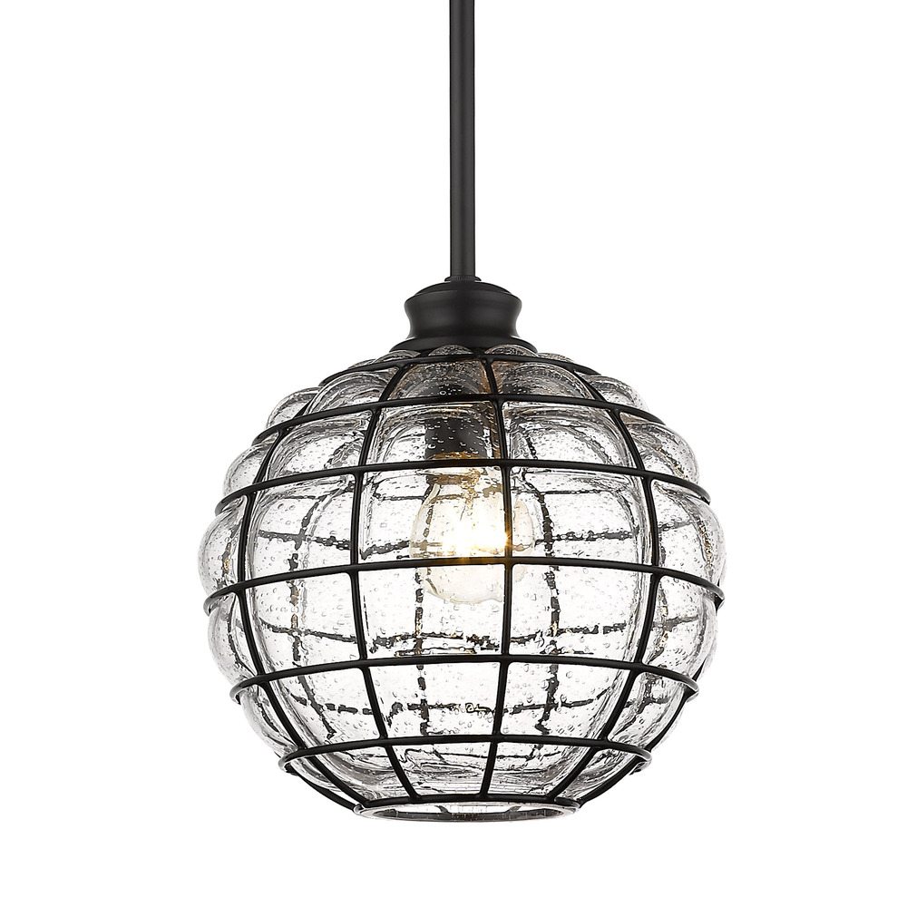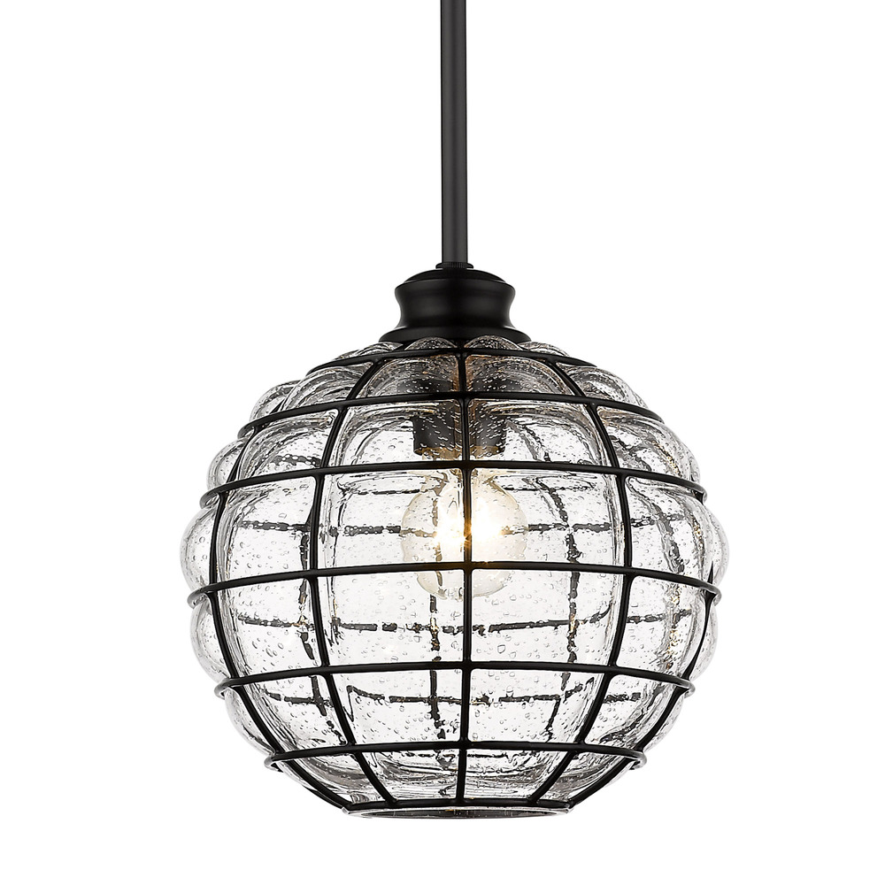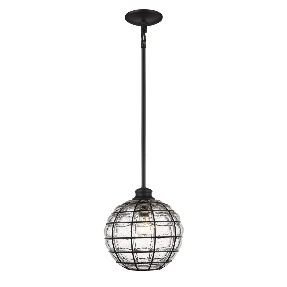 Golden 1096-S BLK-SD - Powell Small Pendant in Matte Black with Seeded Glass