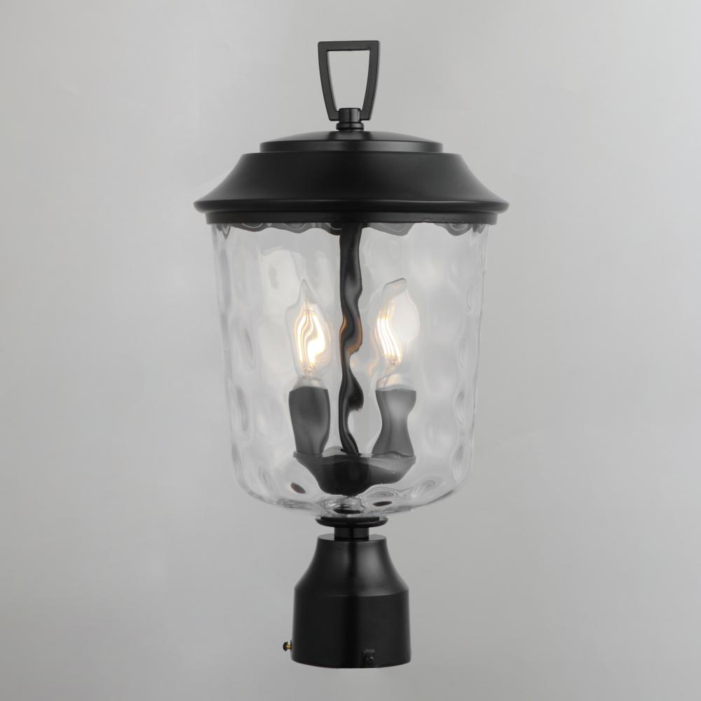 The Prescott collection of outdoor lanterns reimagines a classic design with timeless elegance. Crafted with a durable die-cast aluminum frame and finished in a sleek Matte Black, these lanterns exude a refined, understated charm. The water glass shade cre