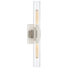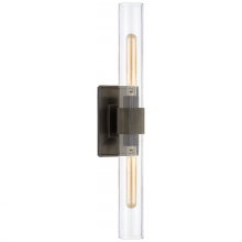 Presidio Petite Double Sconce in Hand-Rubbed Antique Brass with Clear Glass