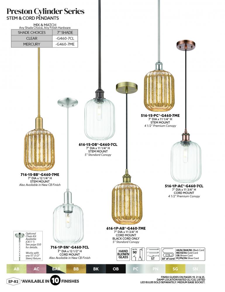 Innovations Lighting 516-1P-AB-G460-7ME - Preston Cylinder - 1 Light - 7 inch - Antique Brass - Cord hung - Mini Pendant