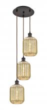 Preston Cylinder - 3 Light - 13 inch - Antique Brass - Cord Hung - Multi Pendant