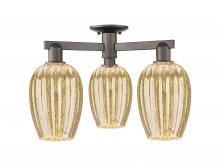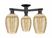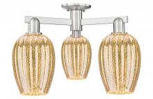 Preston Flute - 3 Light - 6 inch - Antique Brass - Mercury Preston Flute Shade - Semi-Flush Mount