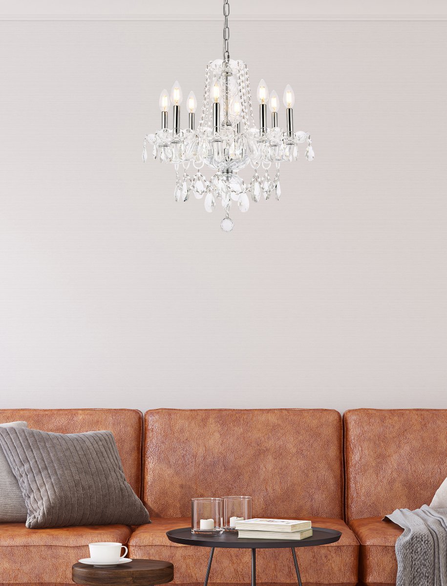 Warm, brilliant light is created by 8 light bulbs. (not included)