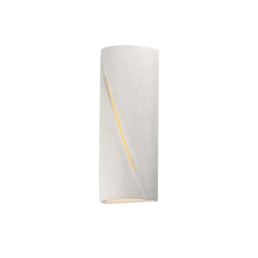 Softly rounding forms are constructed of outdoor-rated concrete molds. Finished in Greystone or Chalky White, these sconces are both playful and sophisticated. A diagonal reveal along the fixture's body emits light while also casting light above and be