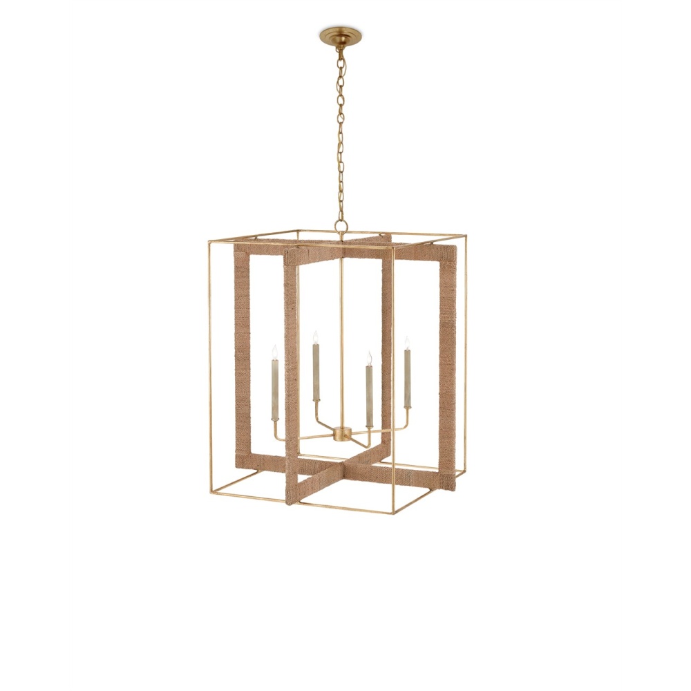 We have no doubt you will be roped into the contemporary style of the Purebred Chandelier with its boxy shapes. The metal bands have been treated to a contemporary gold leaf finish while the wider rectangles have been wrapped in abaca rope. The interplay of these elemental geometric forms creates a warm contrast to the gleaming gold. We also offer a Purebred Pendant.