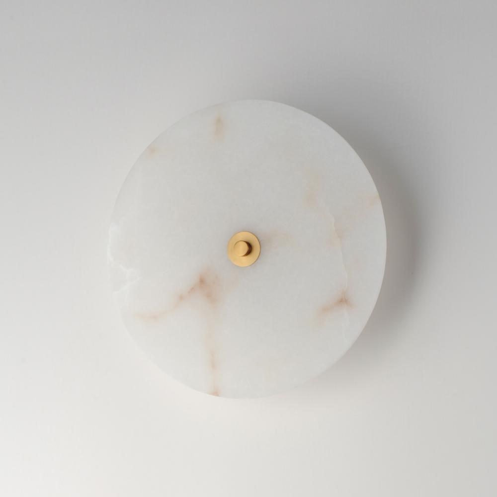 Modern in execution, the Quarry collection features natural Spanish alabaster in an iron frame finished in Darkened Bronze or Natural Aged Brass. Dedicated LED housing shine light on alabaster panels, highlighting the stone's beautiful, veined characte