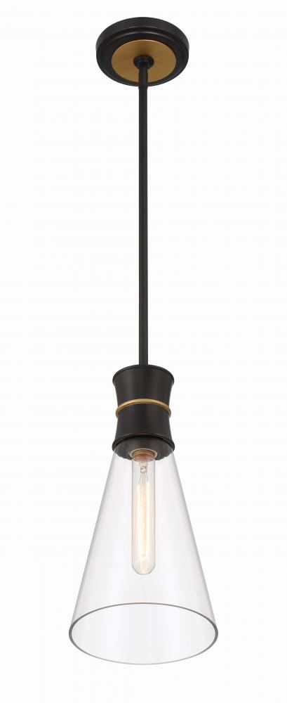 Quinn 7'' Matte Black + Textured Gold Pendant