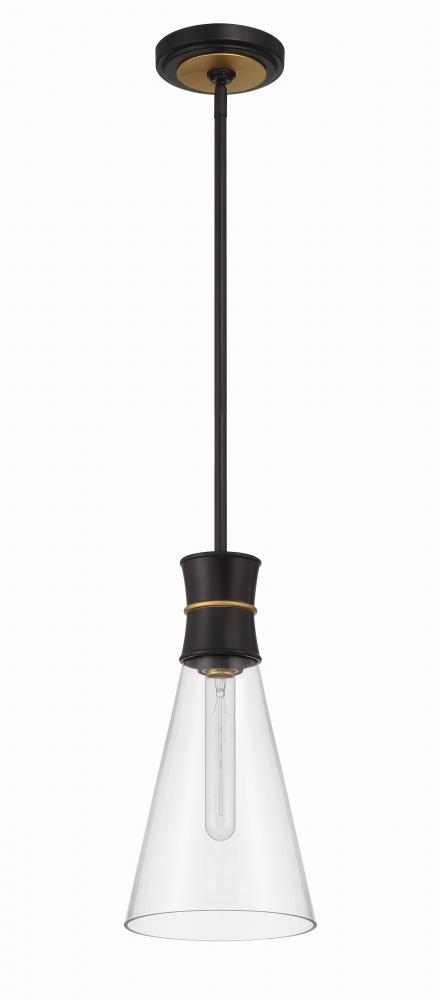 The Quinn Collection is a bold, modern statement piece that combines form and function effortlessly. With its striking two-tone finish, it immediately catches the eye. Its transparent glass cone shade is a stunning focal point, allowing a single bulb to disperse warm and inviting light, creating a welcoming and chic atmosphere. (Bulb not included.)