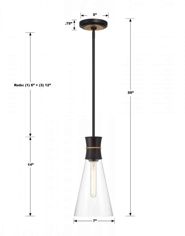Crystorama QUN-1500-MK-TG - Quinn 7'' Matte Black + Textured Gold Pendant