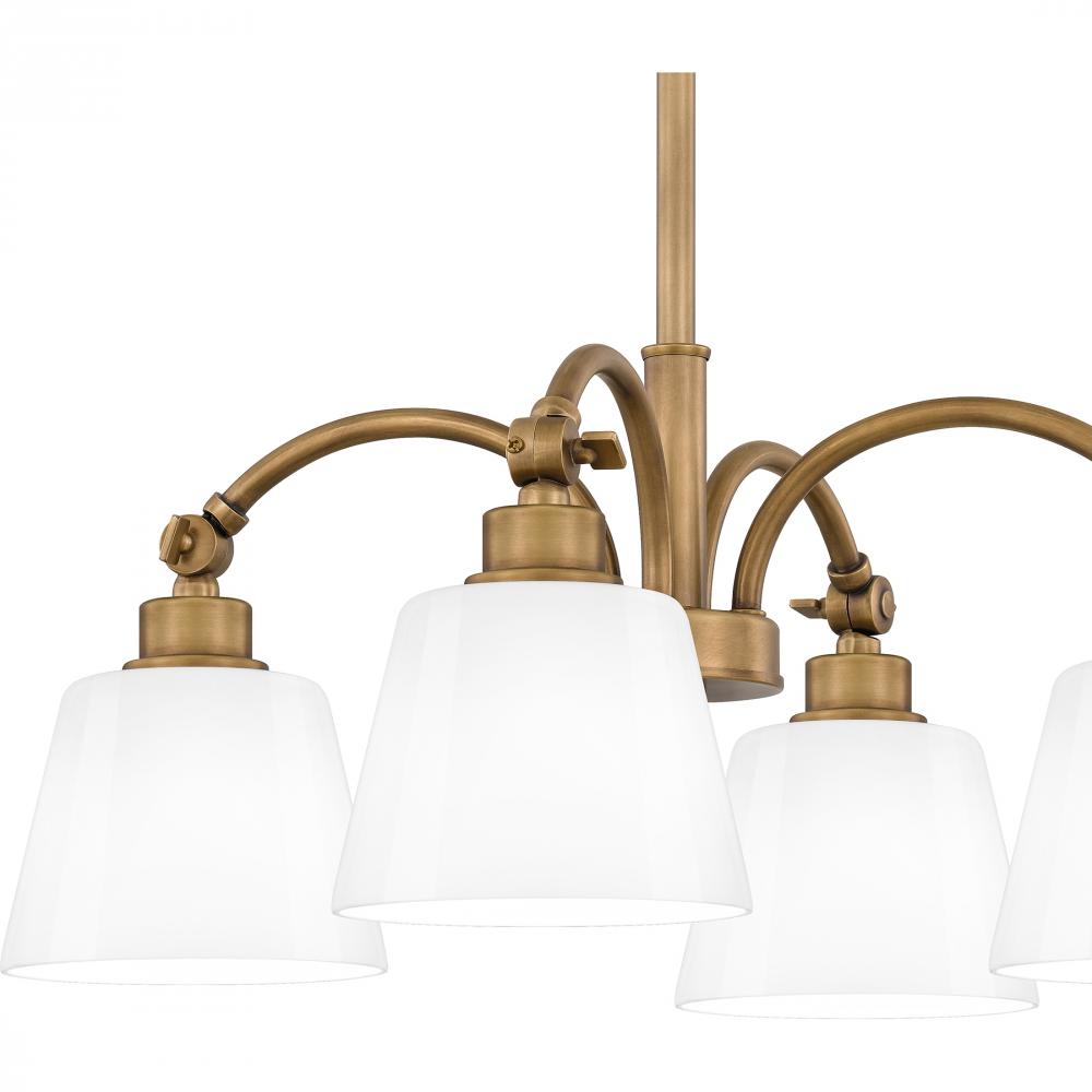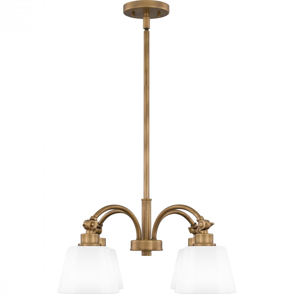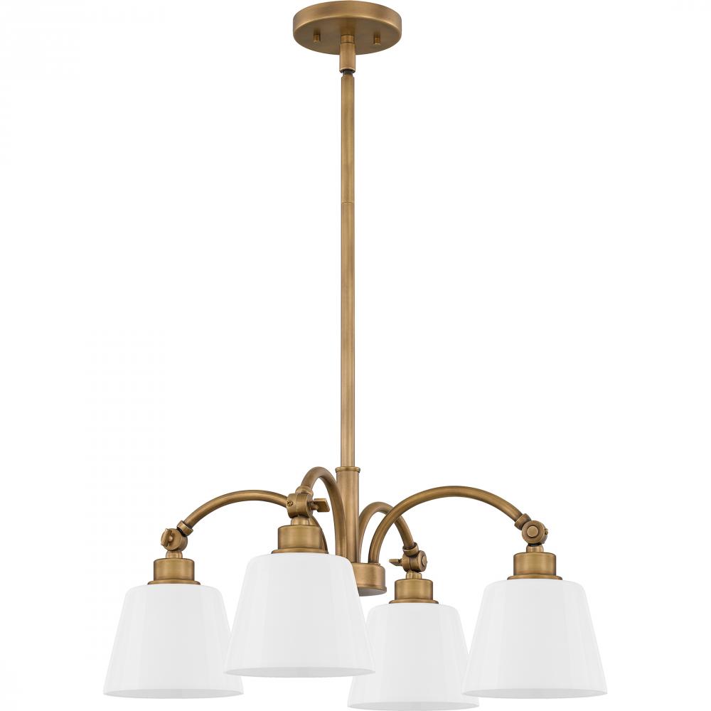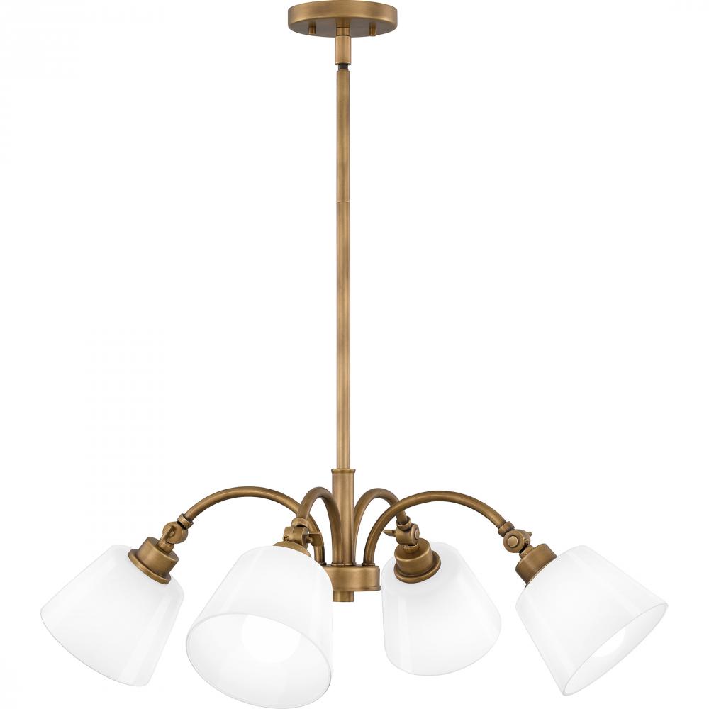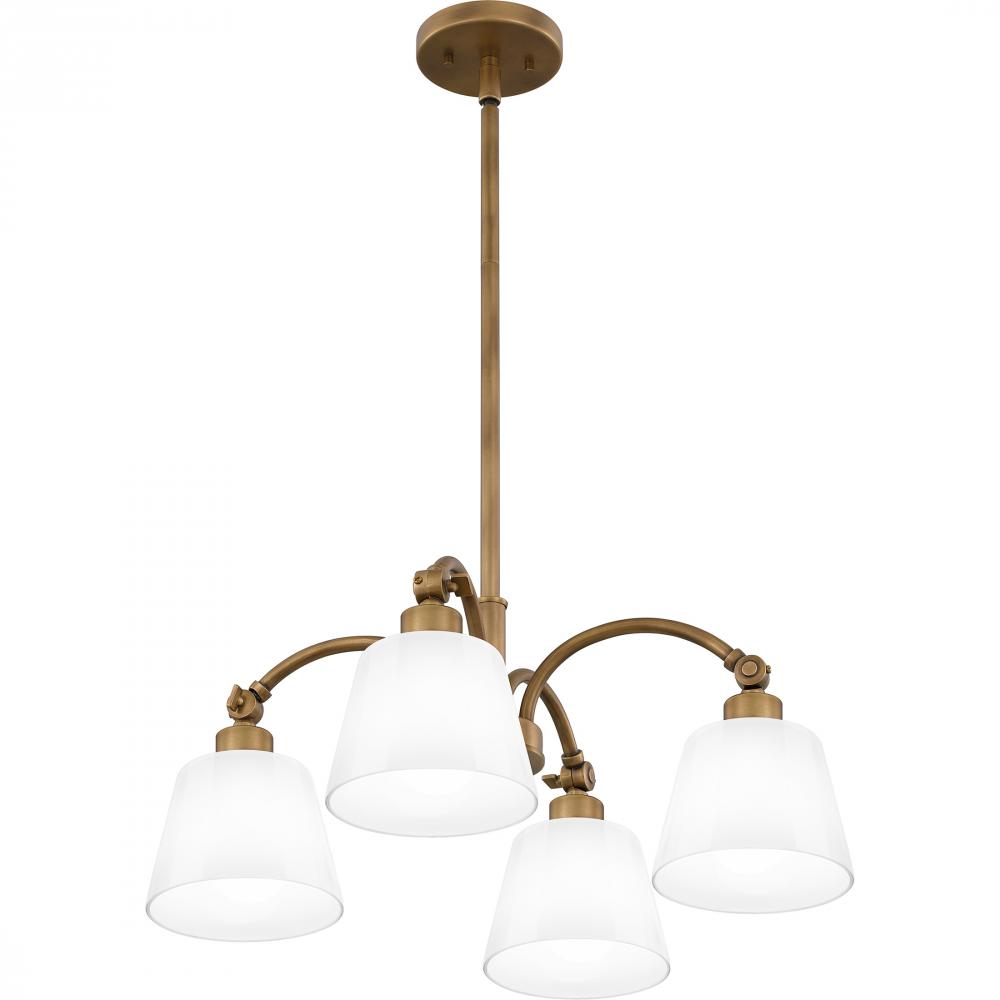 Chandelier 4 lights weathered brass.